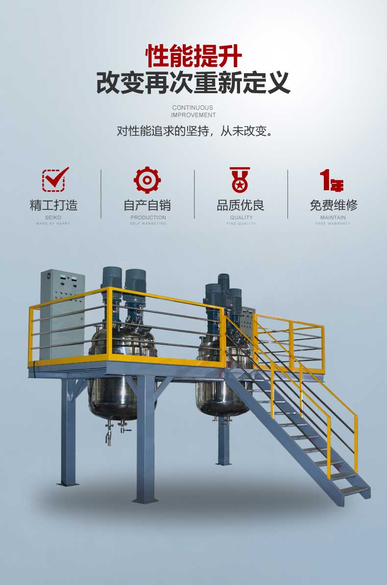 6、 不(bu)鏽鋼反應釜(fu)的結構與貯(zhu)罐、配液罐一(yi)樣,可以采用(yong)單層或🌍夾套(tào)結構;
