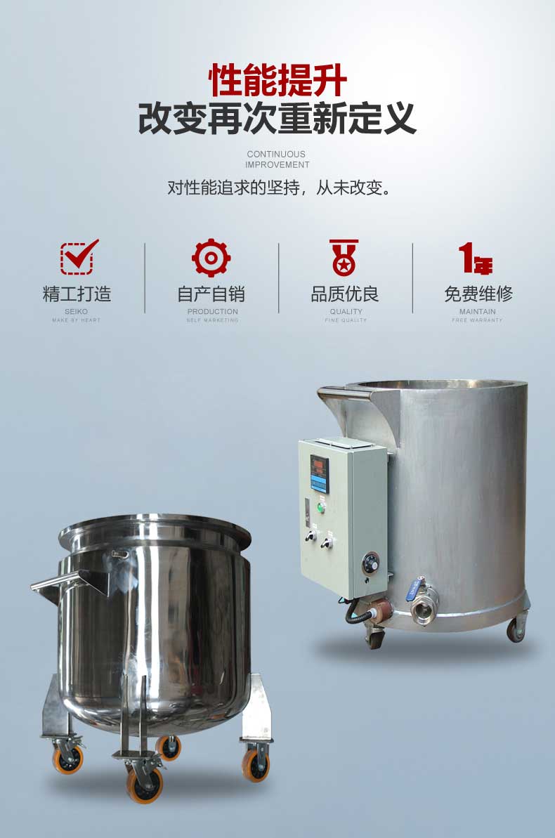 1. 拉缸(分散(san)缸)主要由輪子、金(jīn)屬缸體、加強圈、拉(la)扣等構成,規格和(hé)材質可定制:水性(xing)流體一般選用不(bu)鏽🐆鋼拉缸,規格大(dà)小從🚶100L-5000L不等🎯。